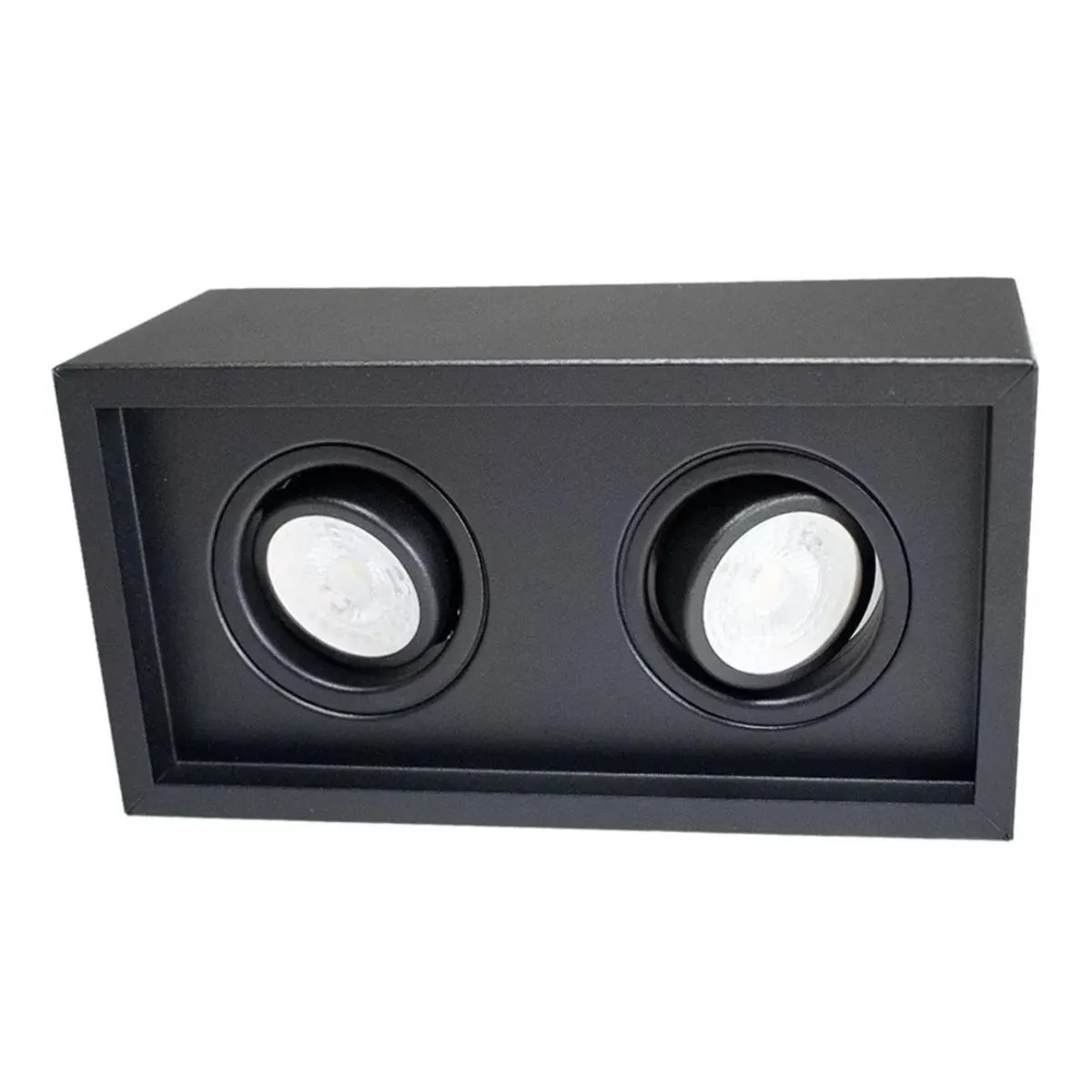 O Spot Plafon MR16 Quadrado Sobrepor 2 Encaixe GU10 Preto combina estilo e funcionalidade para iluminar seus espaços com elegância. Seu design quadrado e acabamento preto fosco proporcionam um toque contemporâneo a qualquer ambiente. Com quatro encaixes GU10, oferece flexibilidade na direção da luz, destacando pontos específicos em residências, escritórios, lojas ou espaços comerciais.